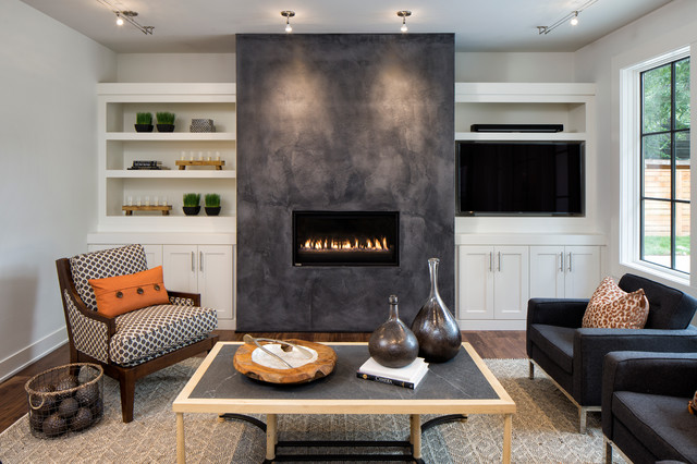 I like this dark concrete stuff around the fireplace