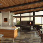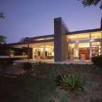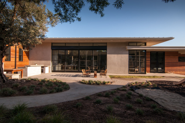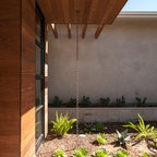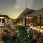 This new home for a young family responds to the desire for a modern, comfortable and sustainable home. Within the single-story structure three distinct levels, each connected by 3 steps, are designed to graciously work with the gently sloping site, providing multiple connection points to the outdoors along the way. Public areas of the house open up to engage the outdoor living spaces, while bedrooms along the north side of the home preserve privacy. The mass of the home was sited along the northern portion of the lot to take advantage of natural light throughout the year. Overhangs are proportioned to keep the house cool in the summer while taking in the sun’s warmth in the winter months.