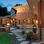 This new home for a young family responds to the desire for a modern, comfortable and sustainable home. Within the single-story structure three distinct levels, each connected by 3 steps, are designed to graciously work with the gently sloping site, providing multiple connection points to the outdoors along the way. Public areas of the house open up to engage the outdoor living spaces, while bedrooms along the north side of the home preserve privacy. The mass of the home was sited along the northern portion of the lot to take advantage of natural light throughout the year. Overhangs are proportioned to keep the house cool in the summer while taking in the sun’s warmth in the winter months.