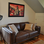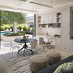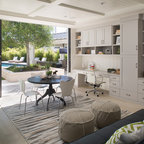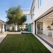 The Alameda Residence is situated on a relatively large, yet unusually shaped lot for the beachside community of Coronado, California. The orientation of the “L” shaped main home and linear shaped guest house and covered patio create a large, open courtyard central to the plan. The majority of the spaces in the home are designed to engage the courtyard, lending a sense of openness and light to the home. The aesthetics take inspiration from the simple, clean lines of a traditional “A-frame” barn, intermixed with sleek, minimal detailing that gives the home a contemporary flair. The interior and exterior materials and colors reflect the bright, vibrant hues and textures of the seaside locale.