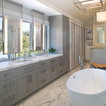 I love all the shelves and the cabinet lighting!! I also love the gray