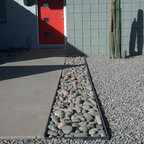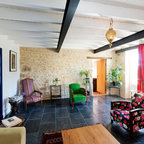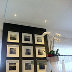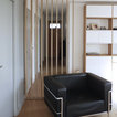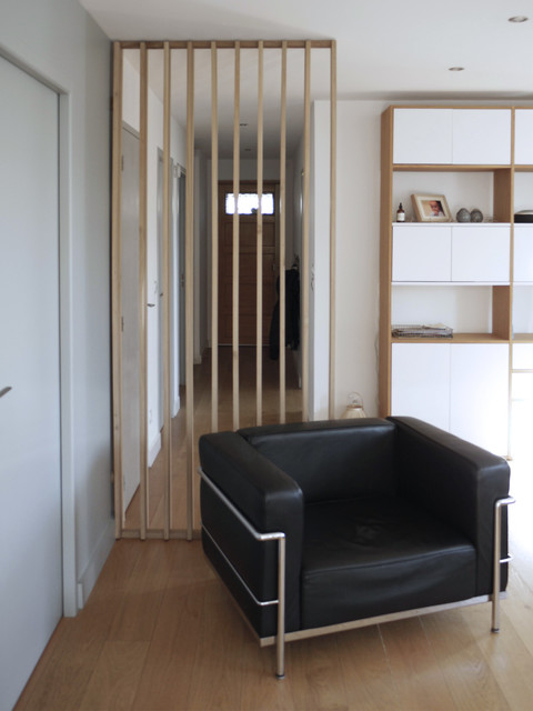 Cette séparation permet d'écarter la porte des WC (juste derrière la claustra) du salon. Elle permet également d'amener un sens de circulation depuis la couloir au séjour.