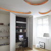 Cerrar la mesa con taburetes bajos (madera), no sillones
