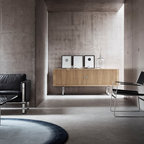 Рисунок на подушках не обязан дублировать цвета или орнаменты, которые «поддерживает». Но он должен иметь общую с интерьером логику. Допустим, подушки украшены ретро-принтом или на каждой — полоски разной толщины. Комбинируйте подушки попарно: например, две подушки однотонные и две полосатые.
