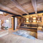 Color scheme with light beams, dark brick, floors