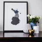 For master bedroom. Find London prints and other black and whites. Fran different sizes to dress up bedroom and hallway.