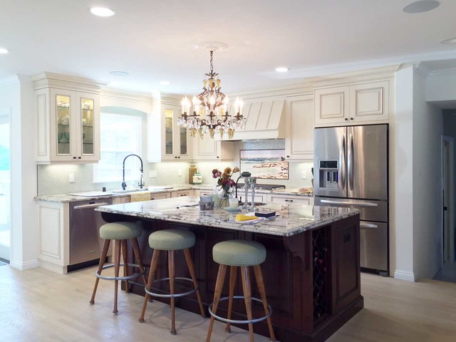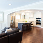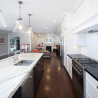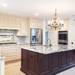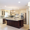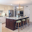 Extra sink on island, ceiling and cabinetry integrated,