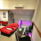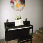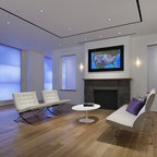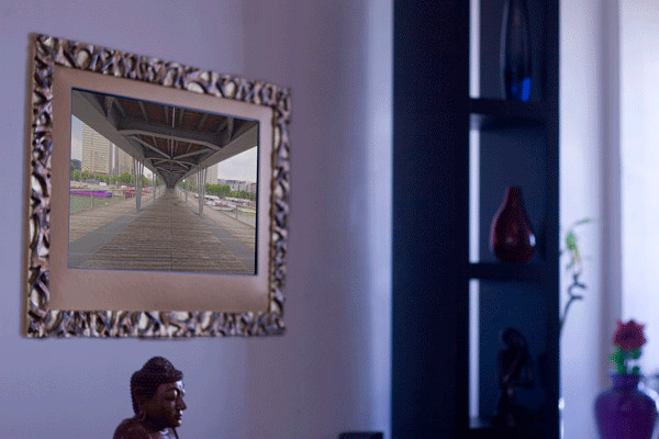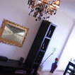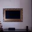 Installation d'un Cadre TV Form-X Or Ancien sur un écran Samsung de 32" dans un appartement à la décoration d'intérieur à l'atmosphère baroque moderne et zen. C'est un Cadre Ecran TV élégant et original.