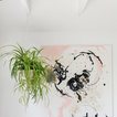 pink walls light floors grey chairs