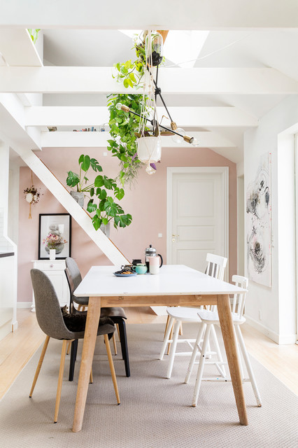 Indram spisebordetLægger du en gren på tværs over dine fritlagte bjælker, er det måske en idé at gøre det over dit spisebord for på den måde at lave en indramning af spisepladsen. Når du hænger lamper og planter på grenen, vil det pynte i området omkring spisebordet og danne en lille oase der, hvor I er sammen som familie.Se også: Brug stubbe og stammer i indretningen