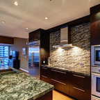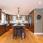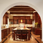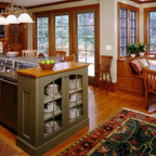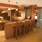 The use of beautiful wood and craftsman style in a more contemporary or transitional setting.