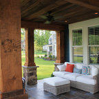 I like the stone columns with the matching fireplace