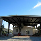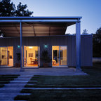 A closer view of one of House Port's designs illustrates how the objects underneath can be spaced apart to create more interstitial spaces. In theory, the port and cubes work independently, so they can be located relative to each other that responds to the client's needs: climate, view, space requirements, and so on.