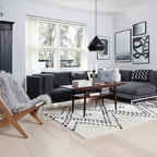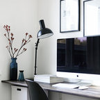 8. Dette lyse kontor med væg-til-væg skrivebord er så enkelt og stilrent, at det nærmest fungerer som et blankt lærred, hvor arbejdet og produktiviteten er i centrum.Nysgerrig på, hvordan ser resten af hjemmet ud? Kom inden for her… Budgetvenlig blogger elsker minimalisme, teak og DIY