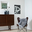 “Det er et dejligt lyst rum med vinduer på begge sider, så man kan se ud i skoven og ud langs vejen og markerne,” fortæller Louise og forklarer, at det er med til at gøre værelset til hendes favoritsted i hjemmet.Væg til væg-skrivebordet er endnu en af Louises DIY, som også findes på hendes blog. Kontorstolen er fra Ikea