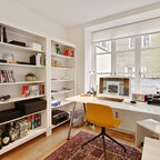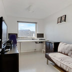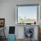 5. Brug soveværelsets længdeTil lange, men smalle soveværelser kan det være en oplagt løsning at bruge rummets længde til at skabe en kontorplads. Det kunne være med en lang, smal bordplade uden ben. Igen behøver den ikke være meget bredere end, at en bærbar computer kan stå der. Når du netop bruger længden, har du relativt meget afsætningsplads på bordet til dine andre ting. Med den løsning kan I også sidde flere ved hjemmekontoret ad gangen.