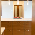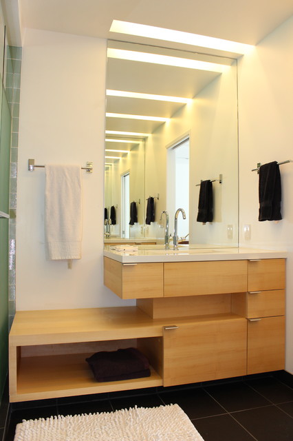 Like the lines of the bathroom cabinetry. Have doubts about the color and practicality of the design.