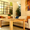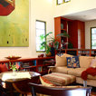 I like this use of color, tile on steps with cement floor, if decide to make some division between dining/living/kitchen
