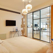 Les verrières de séparation - la salle de bain et le fait qu’elle ne soit pas fermée jusqu’au plafond - la décoration