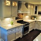 I like this built for the space shelf: maybe the person who does the cabinets for kitchen could do something in the same wood.