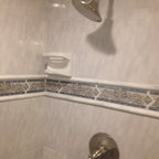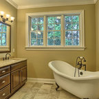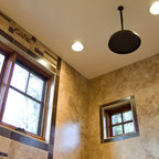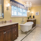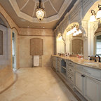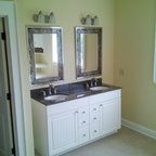 We utilized a Moroccan inspired mirror to accentuate and play with the unusual slanted roof line. By adding clean lines and ample drawers for storage, we were able to transform this outdated bathroom into a true modern master retreat.