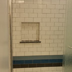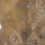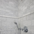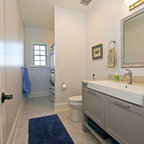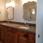 We utilized a Moroccan inspired mirror to accentuate and play with the unusual slanted roof line. By adding clean lines and ample drawers for storage, we were able to transform this outdated bathroom into a true modern master retreat.