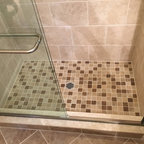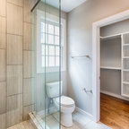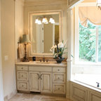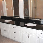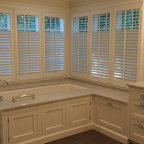 We utilized a Moroccan inspired mirror to accentuate and play with the unusual slanted roof line. By adding clean lines and ample drawers for storage, we were able to transform this outdated bathroom into a true modern master retreat.