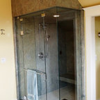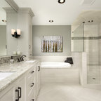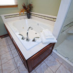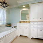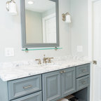 We utilized a Moroccan inspired mirror to accentuate and play with the unusual slanted roof line. By adding clean lines and ample drawers for storage, we were able to transform this outdated bathroom into a true modern master retreat.