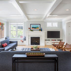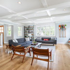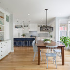 This home is a modern farmhouse on the outside with an open-concept floor plan and nautical/midcentury influence on the inside! From top to bottom, this home was completely customized for the family of four with five bedrooms and 3-1/2 bathrooms spread over three levels of 3,998 sq. ft. This home is functional and utilizes the space wisely without feeling cramped. Some of the details that should be highlighted in this home include the 5” quartersawn oak floors, detailed millwork including ceiling beams, abundant natural lighting, and a cohesive color palate.