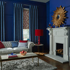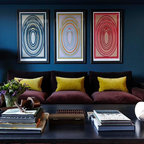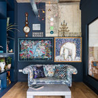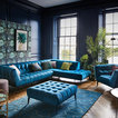 I love the gold white and green urn. I like the velvet sofa and jewel tone.