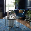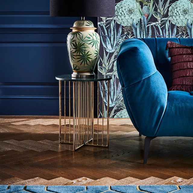 The idea is to pack as much punch as possible in the living room, whatever size your space. From marble topped coffee tables, palm print lamps, Gatsby style cushions to dark teal velvet seating, these luxe pieces will help you achieve our maximalist trend with ease.