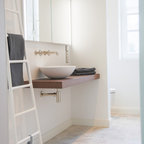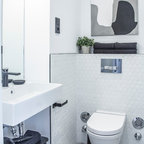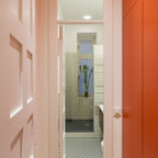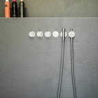 EFTER: Bettina Schneuer installerede et 1,4 meter bredt walk-in brusebad prydet med mintfarvede glasfliser for ekstra lysoptimering. Hertil kommer, at hun placerede toilettet under vinduet, så det ikke længere er det første, man får øje på, når man træder ind i rummet - hvilket var meget vigtigt for hende.Bettina Schneuer er utrolig glad for, at badeværelset har et vindue, “for badeværelser med naturligt lysindfald er så sjældne i etværelseslejligheder.” Toilet: Omega, GeberitBrug for en hånd med badeværelsesrenoveringen? Find en ekspert nær dig på Houzz