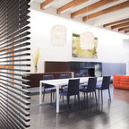 I like the bold contrasting colour of the orange chairs