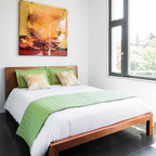 Skab et farvefyldt hjørne, som liver den stramme indretning op.