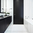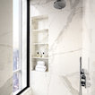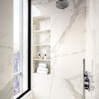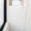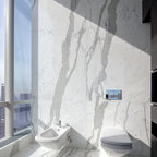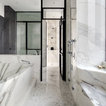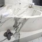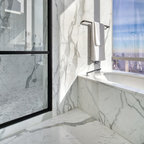 Modern bathroom featuring marble by Ciot. / Salle de bain moderne mettant en vedette le marbre de Ciot.