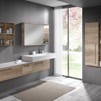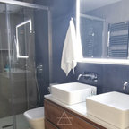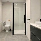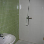 Azulejos, algo más oscuros para pie de ducha, distribución con sanitario perfecto