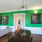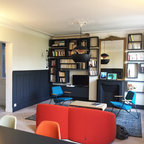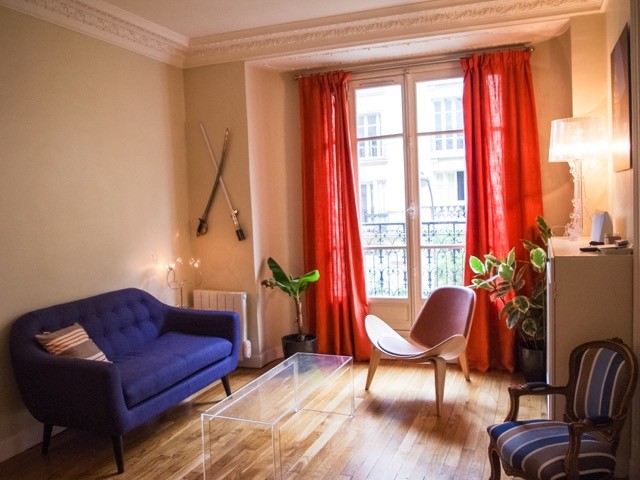 Le client souhaitait mettre de la couleur dans son salon, obtenir une sensation d'espace malgré les m2 restreints et enfin trouver un fauteuil design qui puisse être confortable pour jouer avec une console . Nous avons travaillé sur les couleurs et sur les matériaux afin de respecter au mieux ses choix. Nous avons cherché ensemble les couleurs qui lui correspondaient le mieux c'est à dire le bleu et le orange. Nous avons aussi marié les meubles existant comme le petit fauteuil pour enfant de style Louis XV avec des meubles transparents ( pour la sensation d'espace ) et le fauteuil design puis nous avons remplacé le canapé lit par un canapé plus petit et coloré .