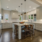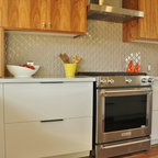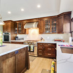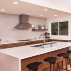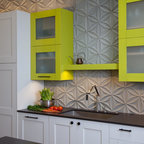 Having a wall of cabinets along the wall looks very clean. These are push, instead of having pulls, so it is seamless like a wall.