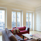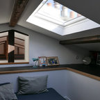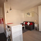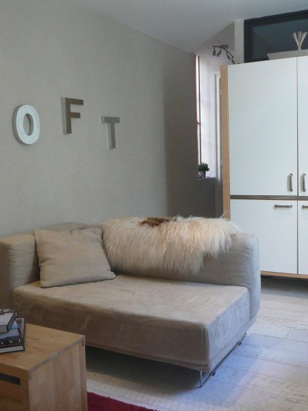 Studio de 27m2 entièrement à rénover et restructurer pour en faire un T1 Bis. Un mur de pierre a été retrouvé et mis en valeur, les murs lissent ont été travaillé aux enduits pour donner un coté matière et des meubles simples et fonctionnels sont venus compléter l’aménagement. Choix des couleurs et des textures pour rendre la pièce douillette et cosy.
