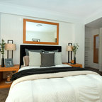 Contemporary Bedroom by Public/Private Public/Private Save Email DO consider size Choosing the correct artwork or frame size is one of the most difficult decisions that many homeowners tell me they struggle with. Is it too big? Is it too small? What size is just right? In most rooms, bigger is always better than too small. A piece of artwork that is too small for the room in which it hangs can feel completely disconnected and lost in the space. For example, one of these small pieces of artwork would look lost above this large and luxurious bed. However, when hung in a group of three the pieces work perfectly. Look upon a group of paintings as one large piece of art. The artwork display, regardless of whether it is one large piece or a group of individual pieces, should measure at least half to two-thirds the width of the piece of furniture below it.