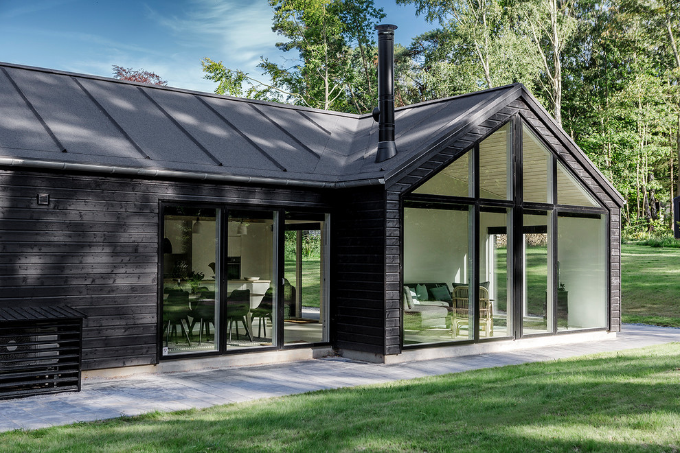 12. Sort, stramt og stringent. De store vinduespartier i sommerhuset her sikrer, at det også er muligt at bade i solen...