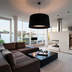 Die Größe des Wohnzimmers. Der Minimalismus die Distanz zur offenen Küche