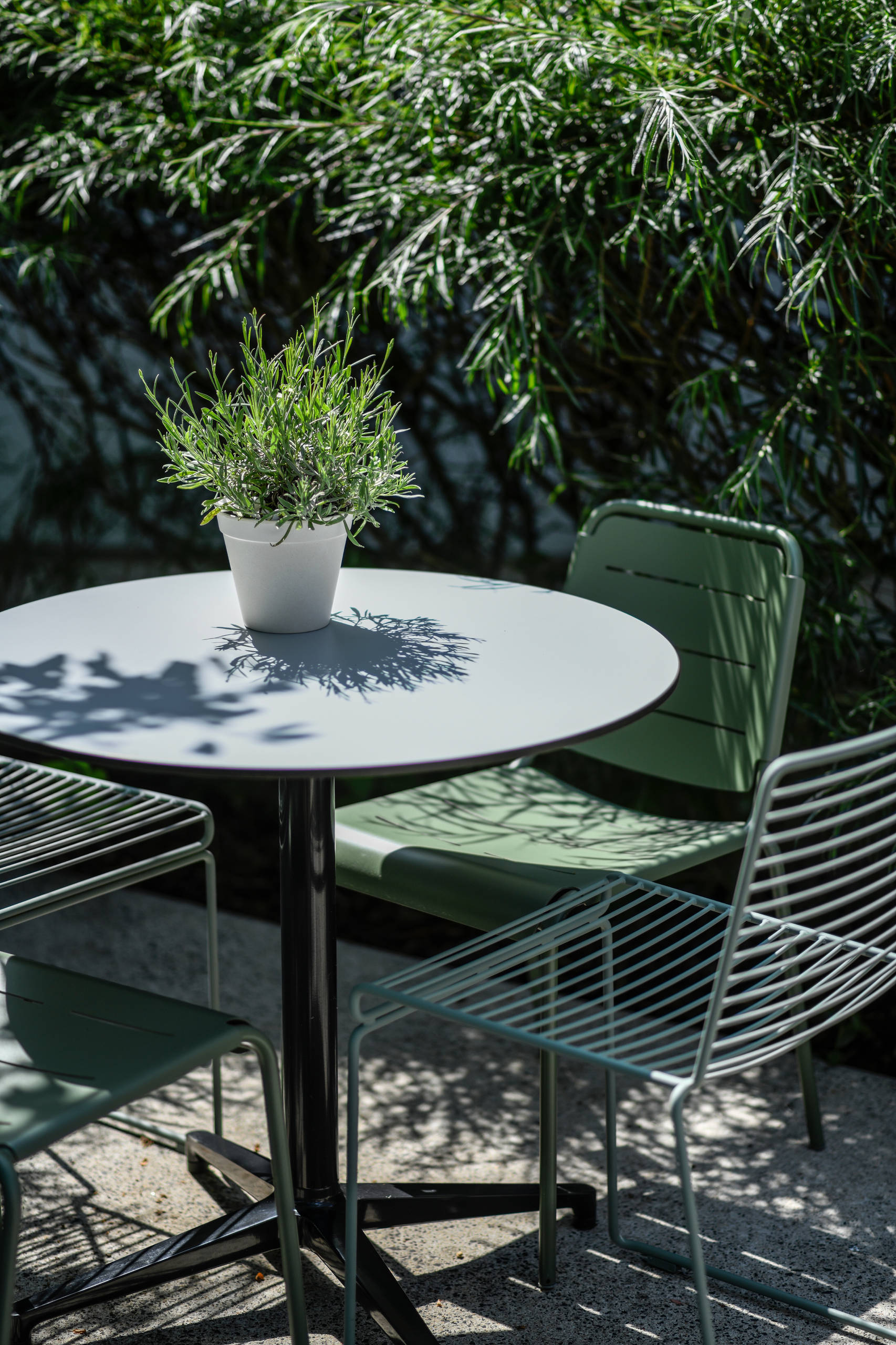 Ja, så ville det være noget, som er både praktisk, veldesignet, let at leve med og som skaber associationer til klasselokaler fra skoletiden. Noget, som indfanger årets farveskema, og som fungerer lige godt inde og ude. Kort sagt noget, der er godt på alle måder. Dette ene uundgåelige objekt er en metalstol med horisontale metalriller og cylinder-ben. Adskillige mærker, herunder Adico og Petite Friture, udstillede deres bud på dette møbel under årets store messe i Paris.