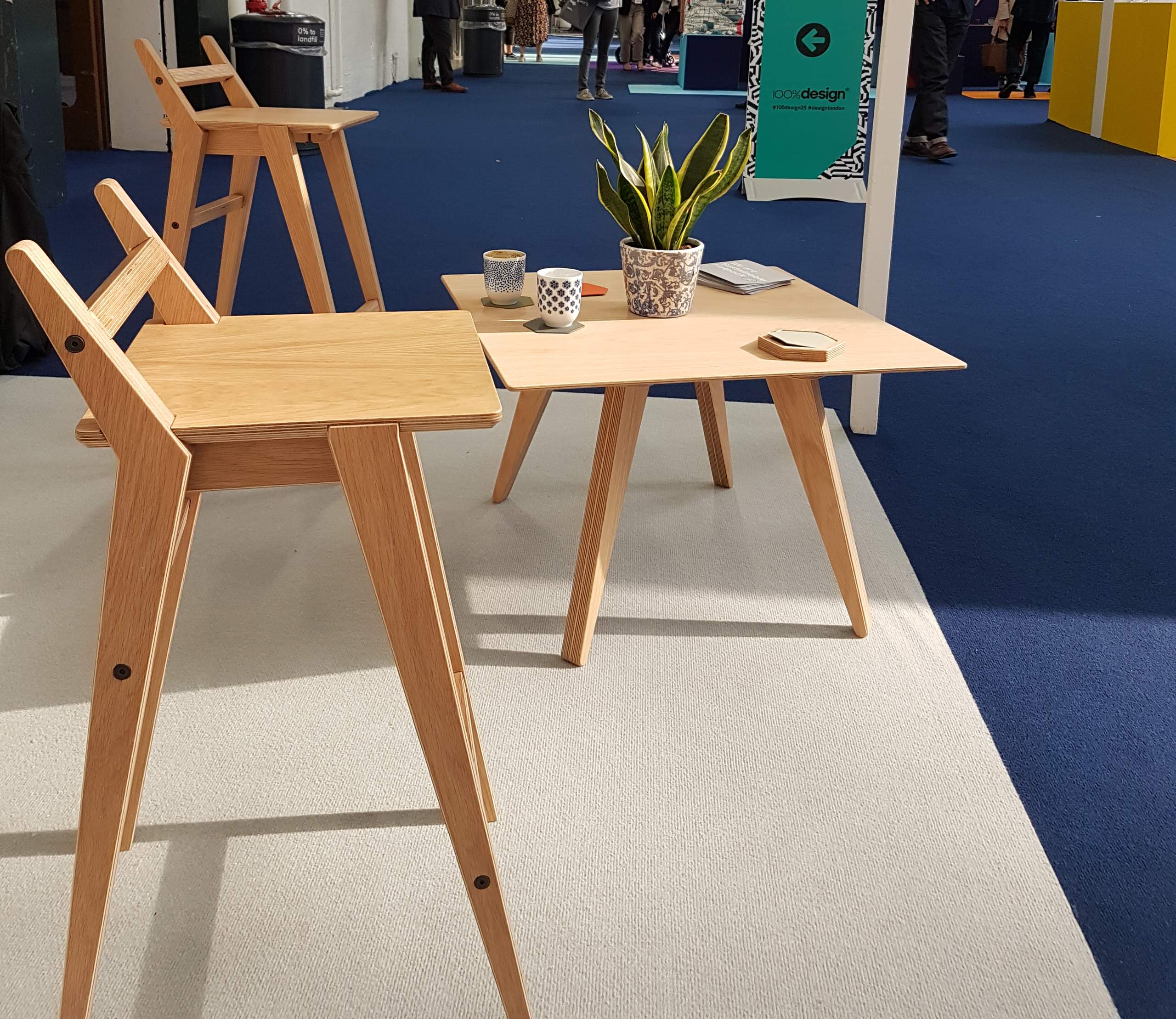 Mærket Grain, som producerer bæredygtige møbler, fremviste også ved udstillingen, og deres team stod klar til at forklare ideen bag deres produkter: De såkaldt flatpacked genstande er designet til at kunne skilles ad, så de enten kan samles igen eller sendes tilbage til firmaet og genbruges.