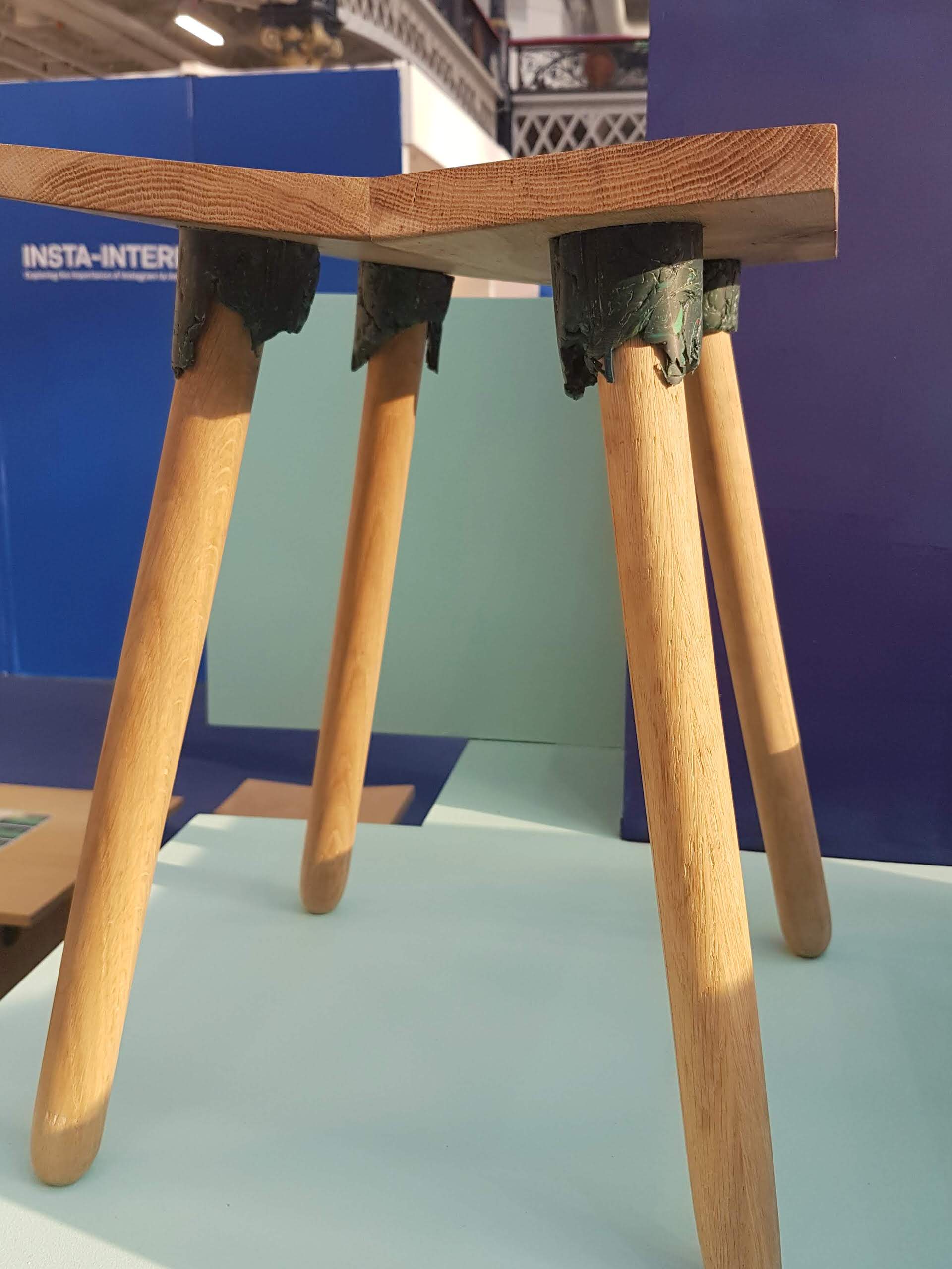 For eksempel var genbrugsplast i klar fokus. Ved Design Fresh demonstrerede den nyuddannede designer Milo-Tonry Brown, hvordan han anvender genbrugsplast til sammenføjning af egetræsmøbler (vist her).