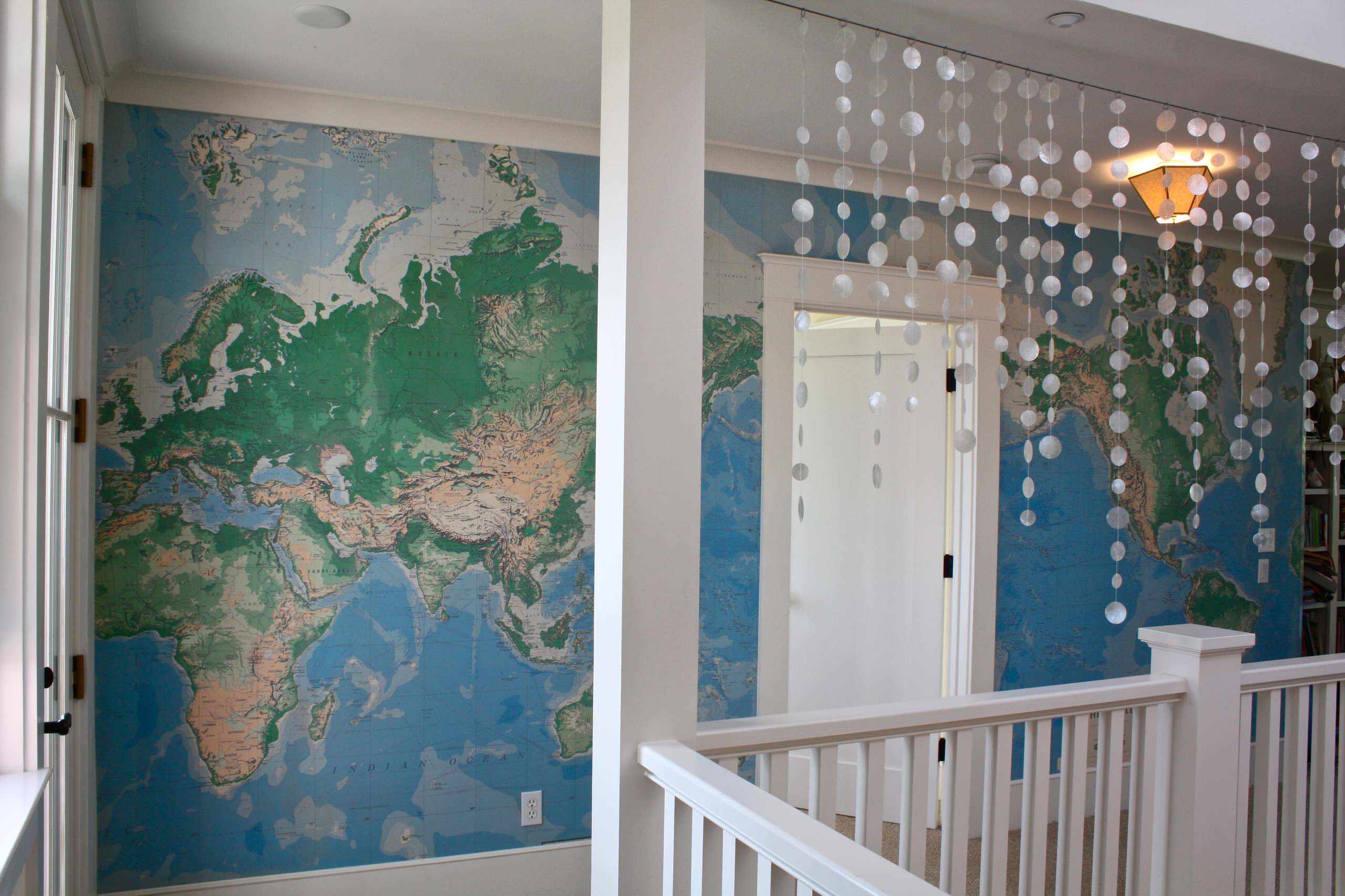 Et stort tapet, der forestiller et verdenskort, kan også være et sjovt element på væggen, så både Annika og hendes gæster stoppe op og udforske de forskellige kontinenter.