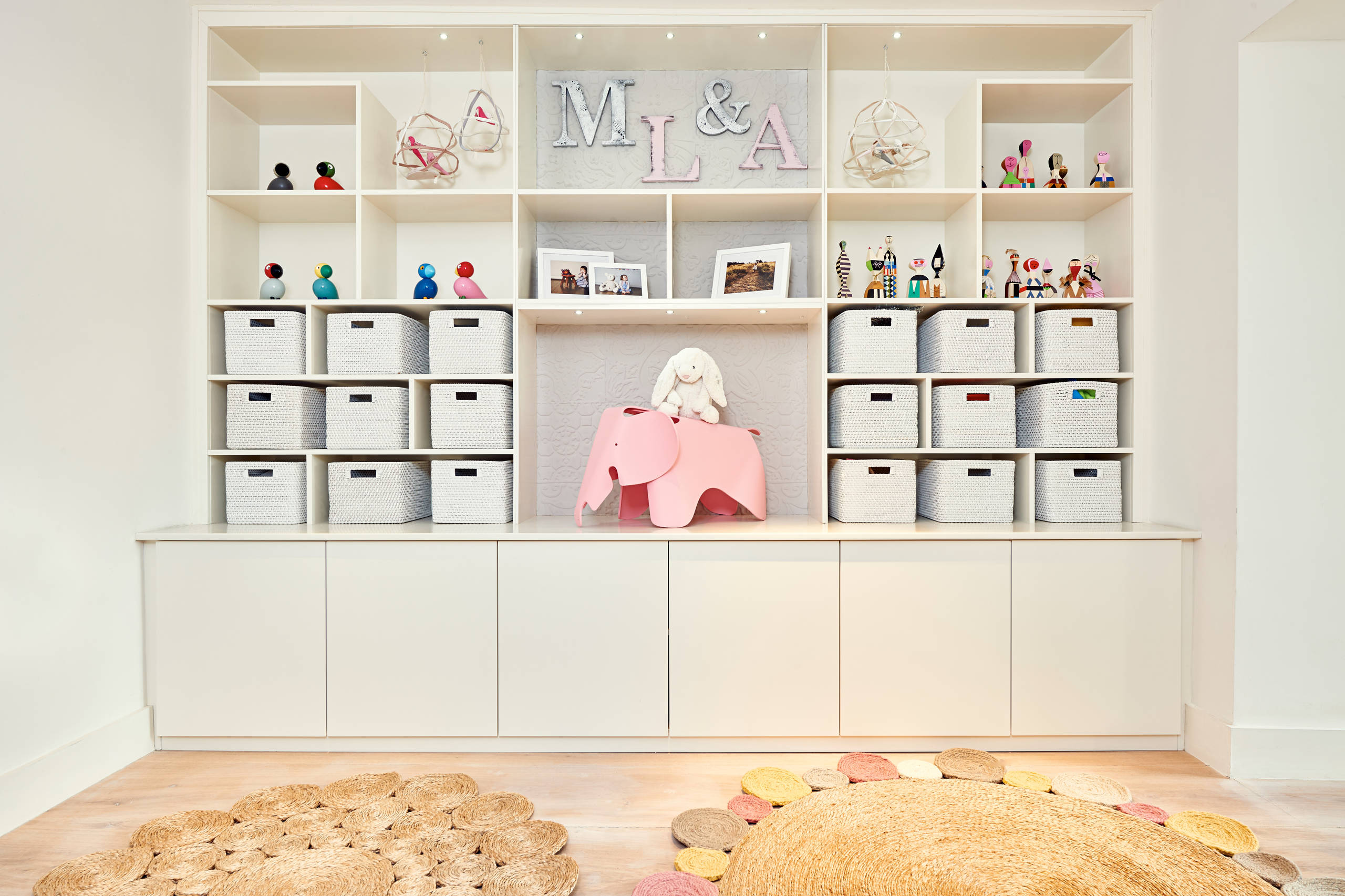 Kasser er ligeledes smarte, da de kan opbevare en masse ting og samtidig får rummet til at se roligt ud, når alt legetøjet er gemt væk.