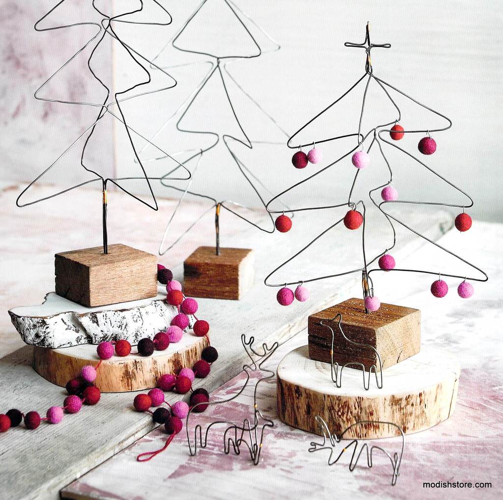 Disse små ståltrådstræer kan bruges som bordpynt til diverse julefrokoster eller til selve juleaften. De er ikke svære at lave selv, og du kan putte perler på træerne, der matcher din bordopdækning.