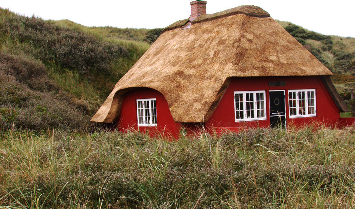 15. Sommerhusets stråtag går næsten i ét med den omkringliggende marehalm i klitterne.