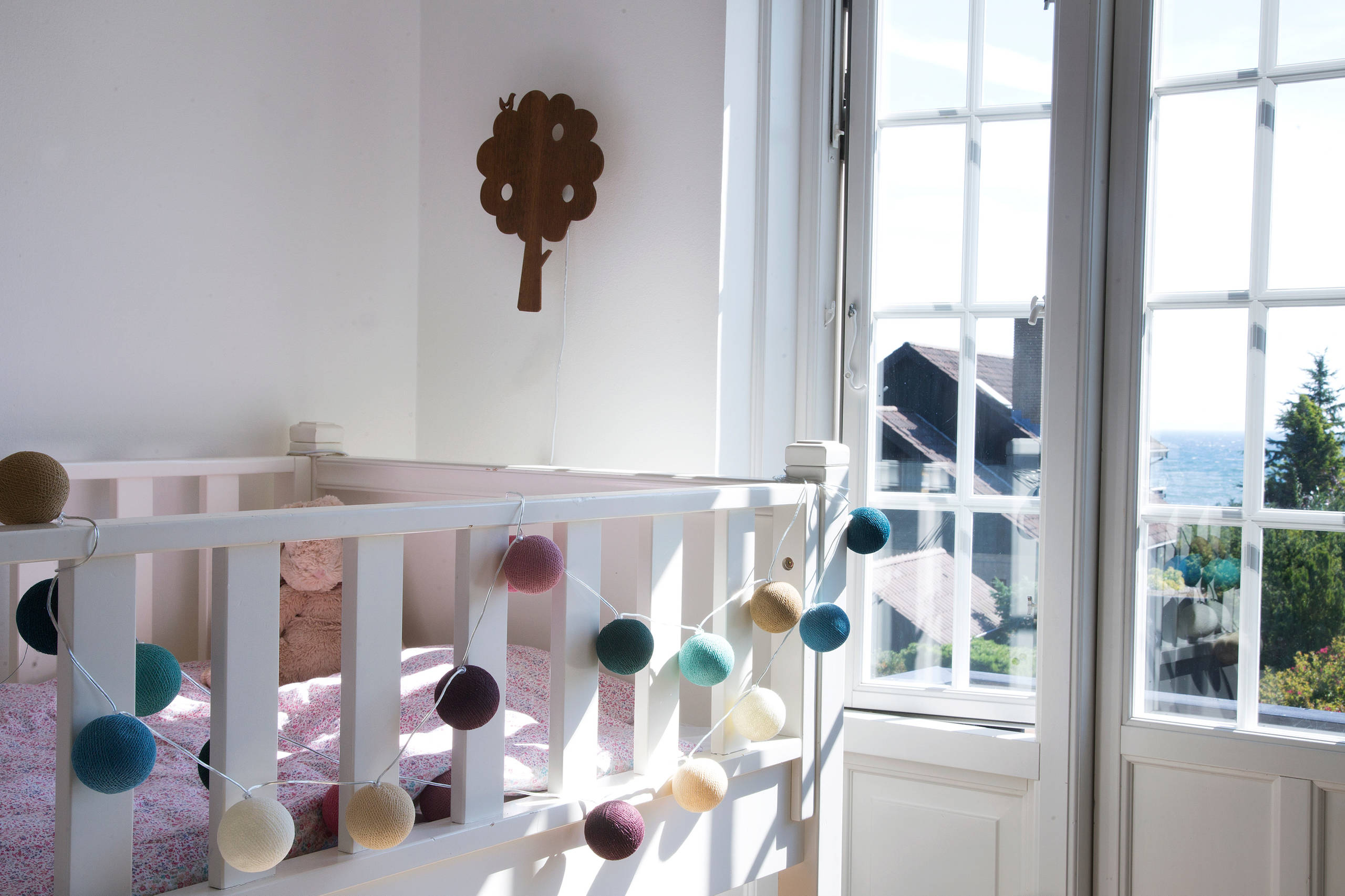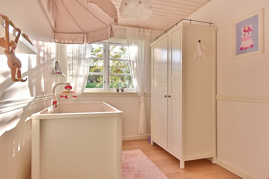 Lene Bjerregaard anbefaler, at væggene i babyværelset bliver holdt i neutrale farver. “Nyfødte og børn i to- til treårsalderen skal helst omgives af helt sarte farver. Det er bedst at begynde med hvid, og så kan man gradvist gå over til helt sarte pastelfarver.”